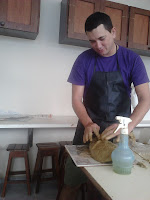 -Depois da peça ''levantada'' e na forma desejada para criar uma cerâmica, deve-se deixar a massa repousar, colocando-a em local arejado, porém com um pedaço de pano úmido em volta.Depois de 1 semana esperando a massa entrar no ''ponto certo'' começamos a molda-la, ela já está em ponto plástico para modelagem.